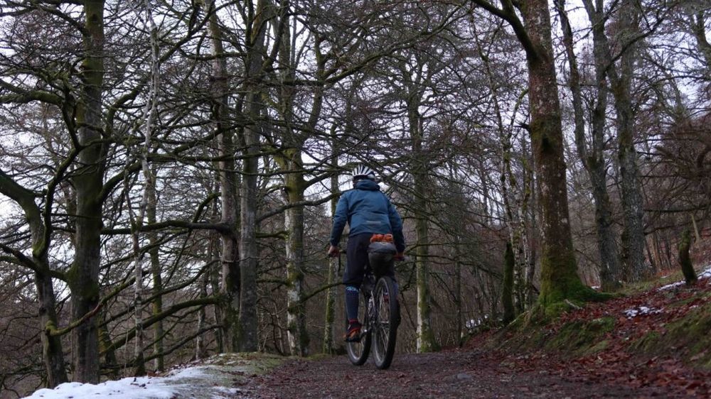 Here the path narrows and continues through the forest, where the Rob Roy Way joins from the left. At Tullichuil the route continues on a wide and smooth gravel track. A small diversion of Rob Roy Way is signposted on the left, which saves opening and closing gates, but can get boggy. The route joins the road from Kenmore to Amulree at Tombuie Cottage, climbing gradually on the tarmac road southeast to the small lochan.