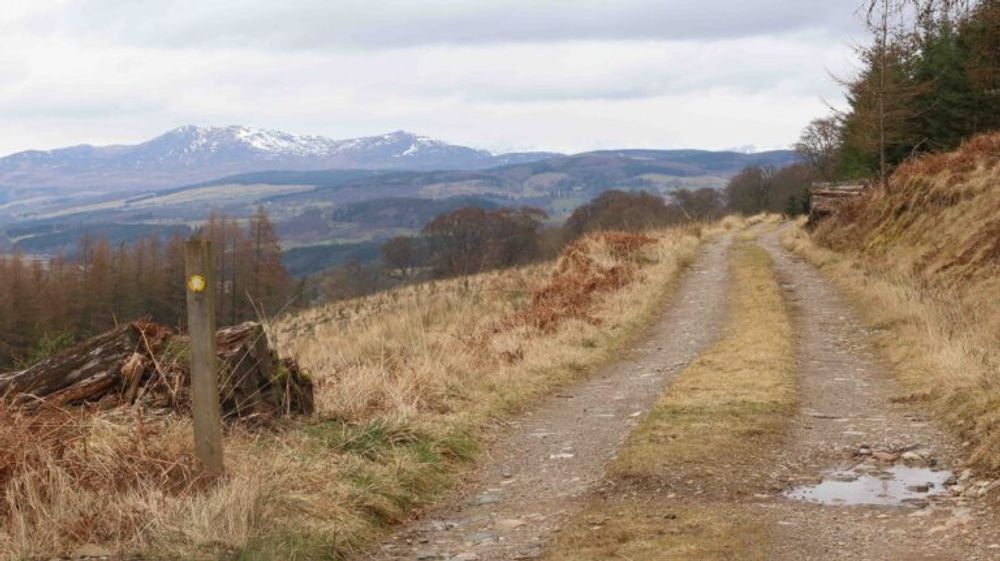 It continues along the northern bank of the River Tay to Dunkeld House Hotel. Passing through the grounds of the hotel the route follows a rough tarmac road northbound to meet Sustrans NCN 83. It then joins the Atholl Woods Path to climb on a good forest track to about 270 m, with a short downhill towards Mill Dam.